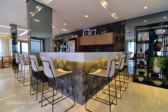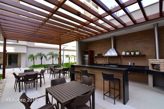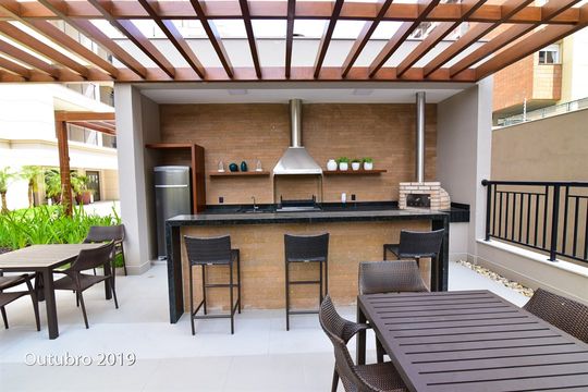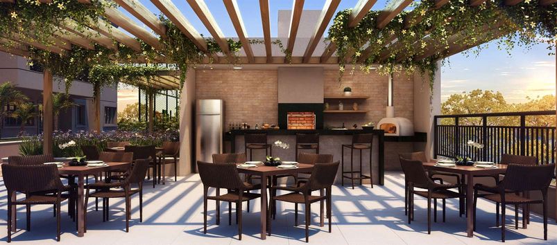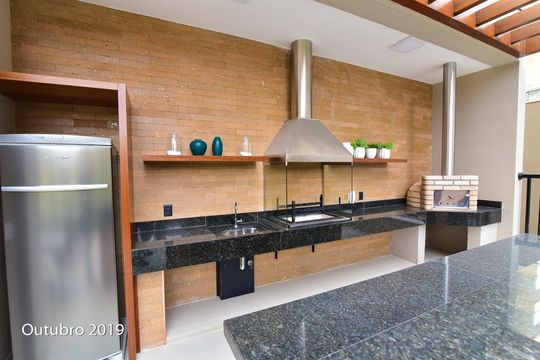 - Varanda gourmet com churrasqueira a carvão integrada à sala e cozinha