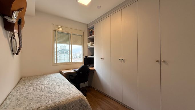 Apartamento com projeto completo de marcenaria sob medida na cozinha, dormitórios, banheiros e varanda gourmet.
