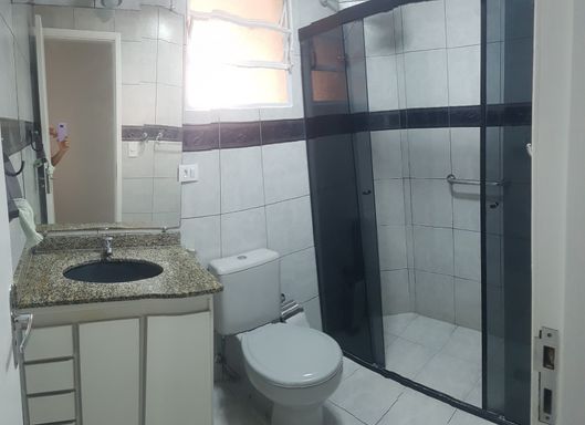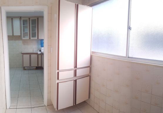 Apartamento com 2 dormitórios, 1 banheiro, área de serviço/lavanderia e 2 vagas de garagem. Cozinha e dormitório com armários planejados.