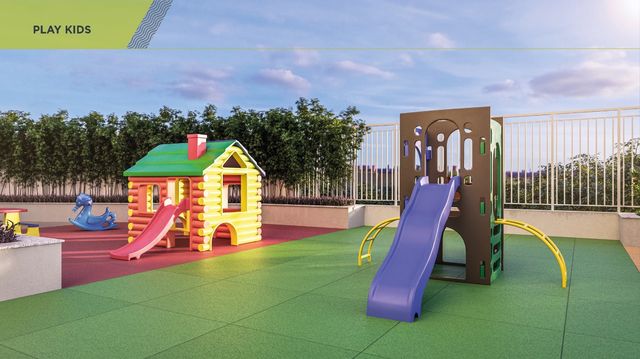 Pav. Térreo: Uber point, praça de boas-vindas, horta, praça de leitura (pergolado com balanço e bancos), jardim, praça dos pais, play baby, play kids, play aventura, brincadeira de rua, funcional, piscina adulto, deck molhado e solarium, piscina infantil, quadra recreativa, apoio quadra, apoio salão de festas, lounge externo, fire place.