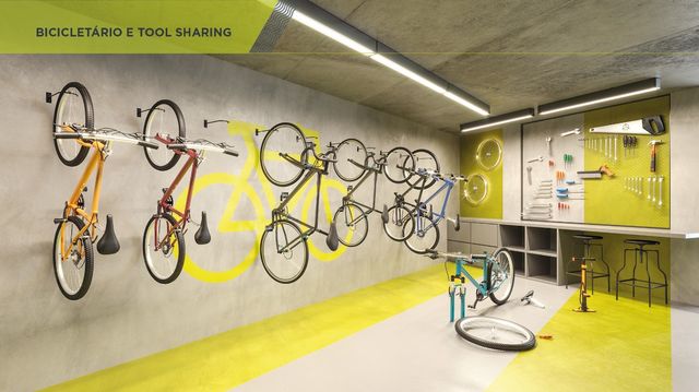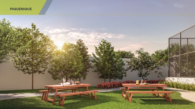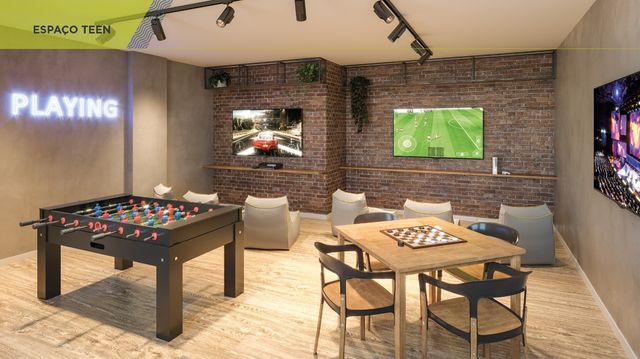 Subsolo: Pomar, piquenique, pet place, beach tennis, footvolley, beach volley, churrasqueira, bicicletário e tool sharing. Torre A: salão de festas, espaço gourmet, coworking e espaço teen. Torre B: salão de jogos, brinquedoteca e academia.
