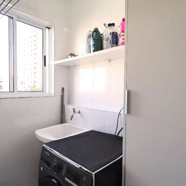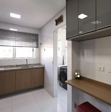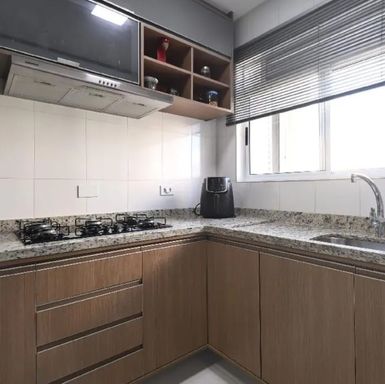 Há sala dois ambiente com sacada, móveis planejados e o proprietário está aberto a negociar a permanência de eletrodomésticos