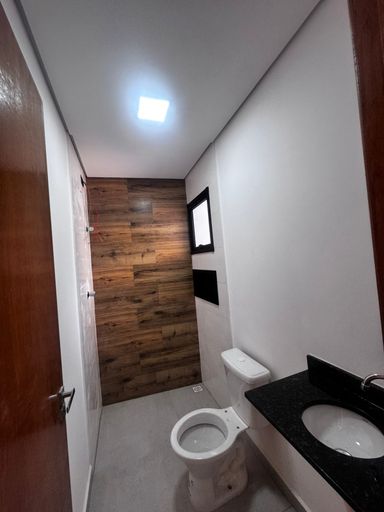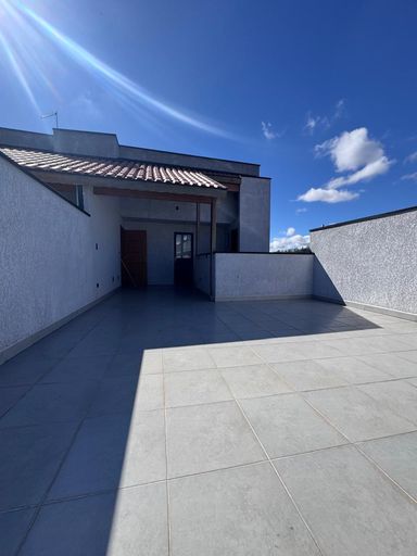 Cobertura do Fundo, contendo na parte inferior, sala de estar, sala de jantar e cozinha conjugadas, 02 dormitórios, sendo um deles do tipo suíte, com banheiro privativo, banheiro social e escadaria de acesso a parte superior, cobertura leve, área de serviço, W.C. e terraço descoberto.