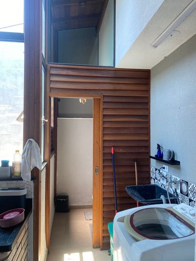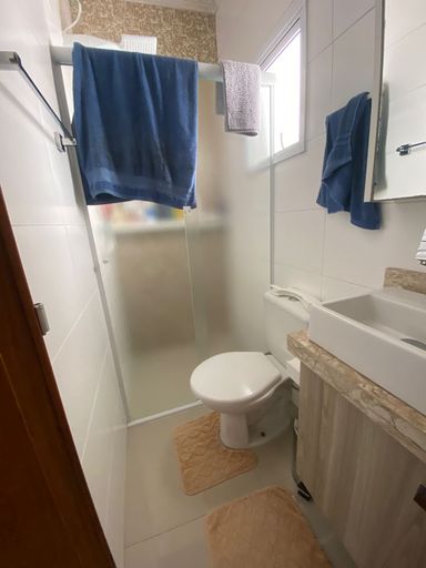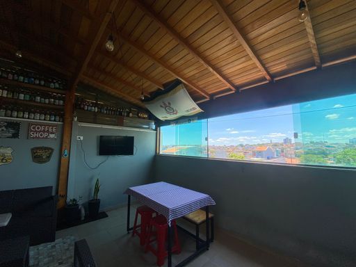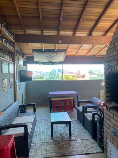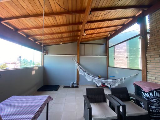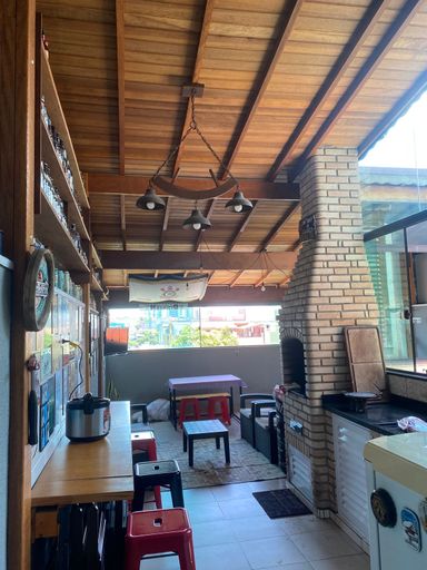 Prédio sem elevador, cobertura toda coberta e envidraçada, churrasqueira e pia em pedra São Gabriel e com lavabo.