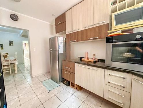 Sobrado com 3 dormitórios, 2 banheiros, sendo 1 suíte e 2 vagas de garagem.